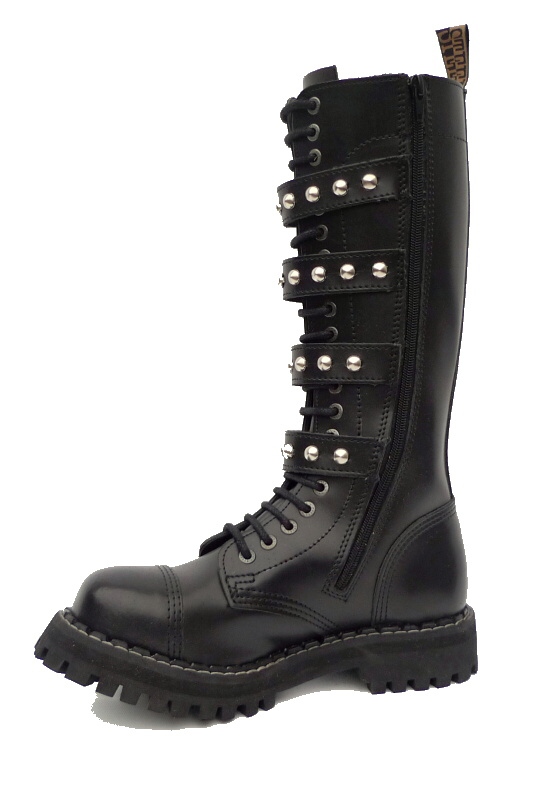 20 dírkové boty STEEL - výška 38-40 cm- celokožené- ocelová špička- šroubovaná podrážka- voskované tkaničky – bavlněné tkaničky- trojité švy.